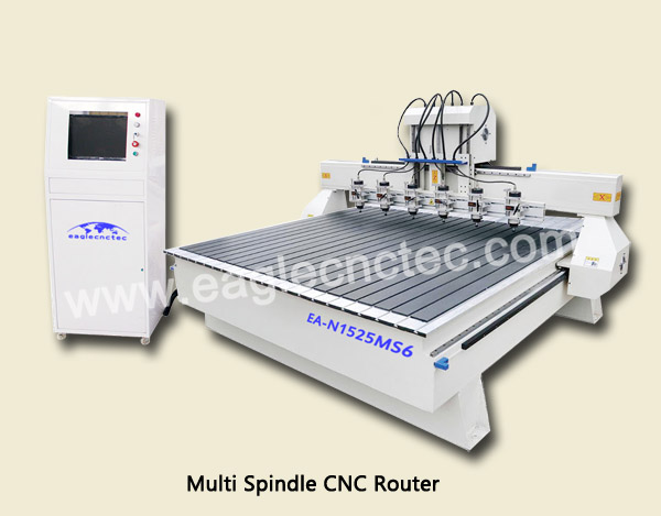Multi spindle cnc router is a model which designed for carving jobs of European style furniture industry. Every woodworker knows, carving jobs is beautiful but time consuming, so if we can engrave more pieces one time, it will increase production largely. Multi heads cnc router is designed for this purpose. Using this machine, you can get 6 pieces carving jobs (max) one time.