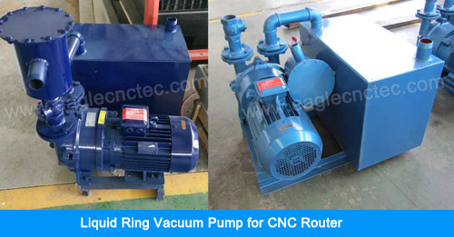 This product is cnc router water ring vacuum pump model 2BV-5111. Water ring vacuum pump is also known as the name of liquid ring vacuum pump because this type pump needs work with water or liquid. This pump is a part of vacuum holding system of cnc router machines. After the material sheet is loaded on vacuum table, cnc vacuum pump will extract air from the bottom of material sheet to hold the sheet firmly. It is the theory how cnc router vacuum table works.