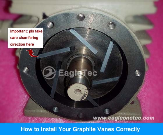 When installing the vacuum pump vanes, please take care the chamfering direction. Don't install in the reverse direction, it will break the vane in a short period. This is very important.