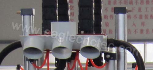 1) EagleTec-W1325PATC3 is a high performance-to-price ratio cnc router with atc, 3 spindles is mounted with 3 different kinds of engraving tools, and the tool change is achieved via spindle switched by pneumatic cylinder.